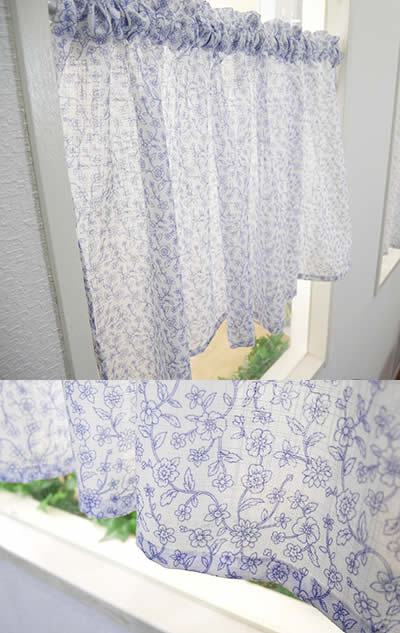ナチュラルテイストのお部屋によく合う、抜染したような小花柄が大人可愛い雰囲気のデザインレースカーテン。