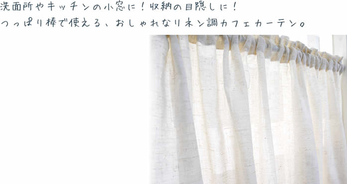 つっぱり棒などのポールを通して使える仕様になっているので、洗面所やキッチンの小窓用カーテンや、ちょっとした収納の目隠しなど、幅広く使えます。