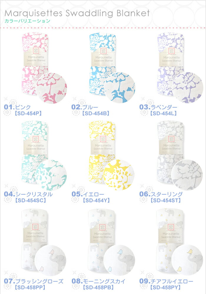 Swaddle Designs (スワドルデザインズ) Marquisettes Swaddling Blanket (マーキゼット スワドリングブランケット) 超軽量 コットン ベビーブランケット おくるみ 大きめサイズ 商品紹介 ブランド Swaddle Designs【スワドルデザインズ】 商品名 Marquisettes Swaddling Blanket 【マーキゼット スワドリングブランケット】 超軽量 コットン ベビーブランケット おくるみ 大きめサイズ 商品紹介 「Swaddle Designs (スワドルデザインズ)」は2002年、看護婦であり二児の母でもあった、 Lynette Damir (リネットダミアー) によって設立されました。